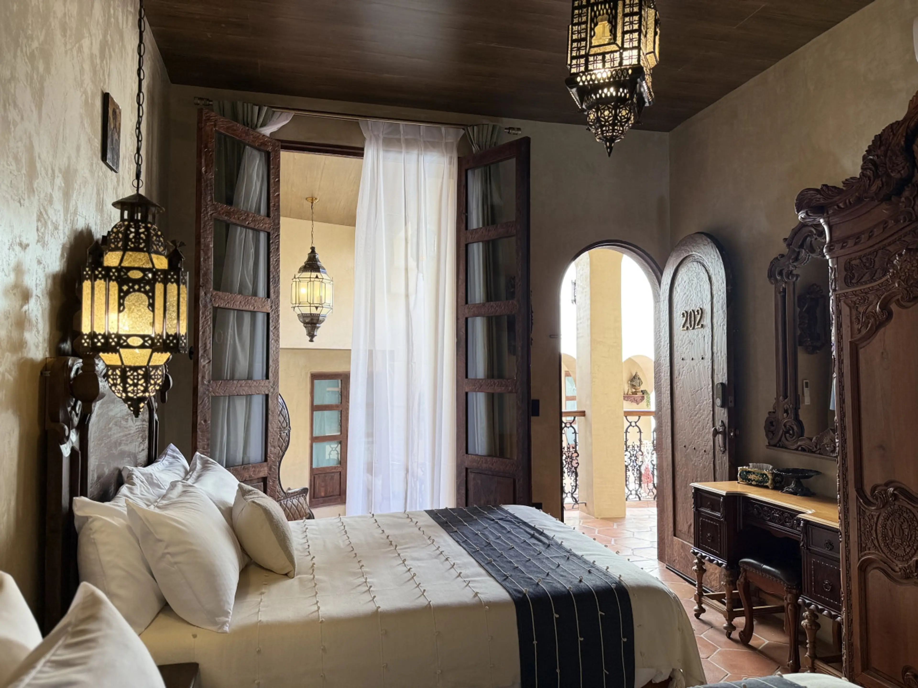 Soft Opening! Experience the opulence of Mexico's traditional design in our Hacienda Suite, featuring two queen beds and authentic Riad-style architecture. Handcrafted with Mexican materials, this luxurious room opens to a shared courtyard with a stunning Cabrera stone fountain. Enjoy modern comfort...